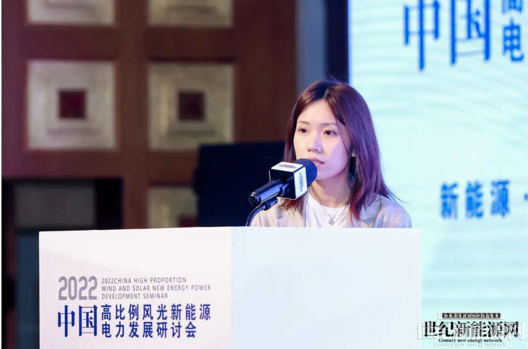 彭博新能源財經中國研究主管寇楠楠對“高比例可再生能源愿景”進行了講解。