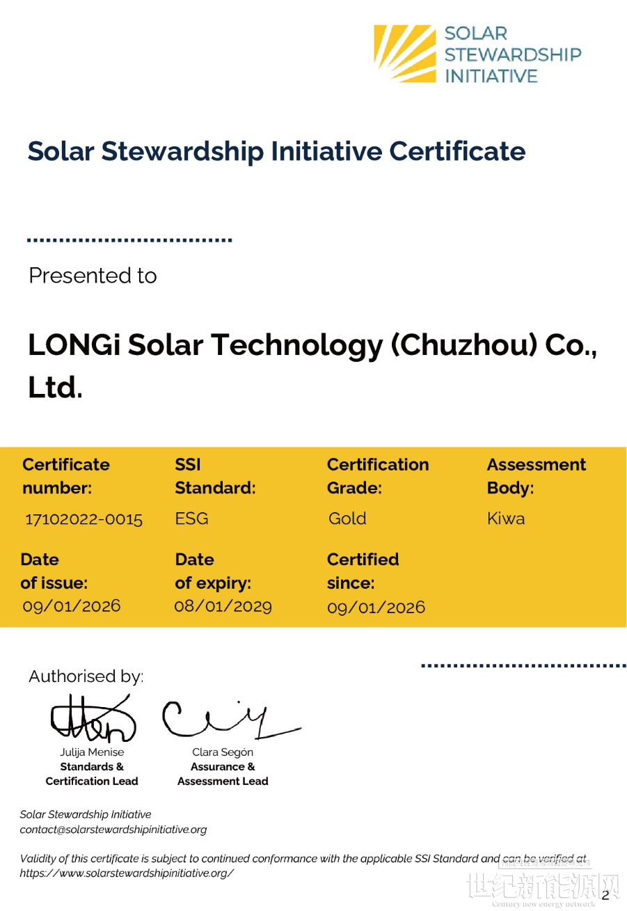 近日,隆基滁州基地憑借卓越的可持續發展實踐,成為全球首家通過SSI(Solar Stewardship Initiative)-ESG標準審計并獲得“金質勛章”認證的光伏企業。這一里程碑式的成就不僅彰顯了隆基在環境、社會和治理(ESG)領域的全球領先地位,更為行業樹立了可持續發展的新標桿。