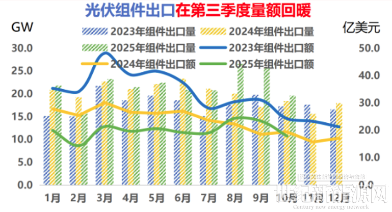2025年1-7月,國內光伏電池組件出口規模為1112.07億元,相較2024年同期下降22.64%;而2025年8-11月,國內光伏電池組件出口規模為741.55億元,同比逆勢提升23.81%,表明國內企業已通過提前搶出口、在海外前置囤貨的方式,為退稅政策調整構建緩沖。