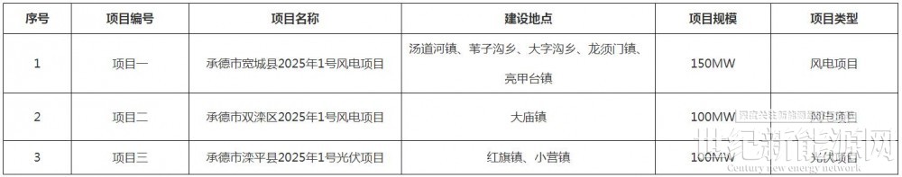 1.競配范圍:寬城縣、雙灤區、灤平縣風電和光伏發電項目共3個。