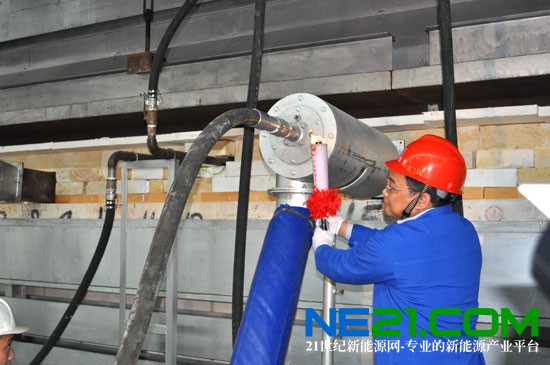 海南中航特玻總經理王金林接過火炬點燃了熔窯