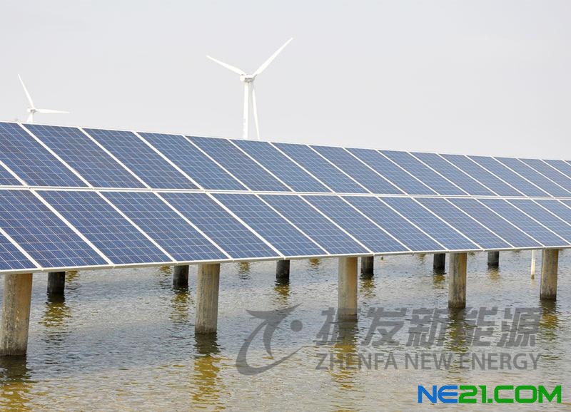 2、本項目是國內最大的風光互補灘涂光伏電站,其中50MW為固定傾角式,10MW采用自適應跟蹤式。